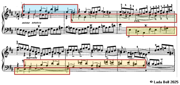 3. Fin de la fugue : retour du thème dans la tonalité principale, souvent accompagné de la strette pour marquer la culmination.