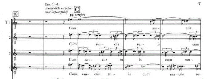 Illustration 1 : extrait de Lux Aeterna de Ligeti pour la section des ténors